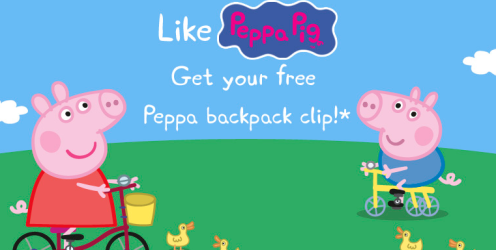 Head over to the Peppa Pig Facebook Page and “Like” them to request a FREE Plush Backpack Clip!