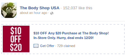 Head on over to The Body Shop’s Facebook page to claim a $10 off $20 coupon. Coupon is good in-store only. Valid 12/19-20 only.