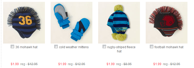 As always, there are MANY great deals.  I always check the clearance section first.  I spotted Winter Hats for as low as $1.59,  Graphic Tee’s for just $3.19 shipped after coupon code and more!