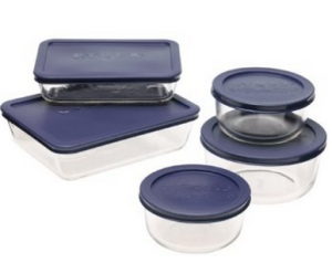 Amazon just dropped the price on their Pyrex Storage 10-Piece Set, Clear with Blue Lids from $19.99 to $14.  The set includes two 2-cup round, one 3-1/2-cup rectangular, one 4-cup round, and one 6-cup rectangular storage containers; five blue plastic lid