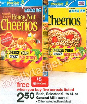 Get a FREE $5 Target Gift Card wyb 5 select General Mills Cereals