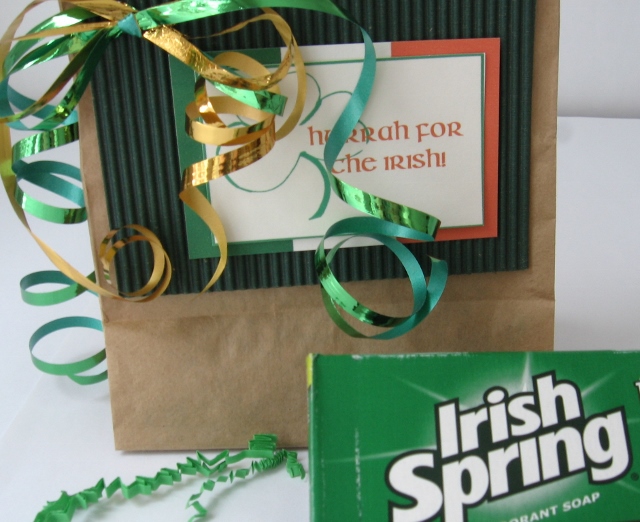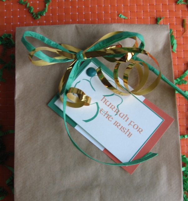 The gift–surrounded by green shreds–in this bag is most definitely memorable and totally IRISH.