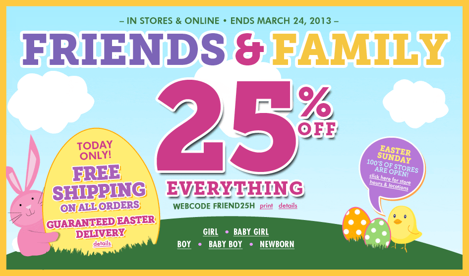 Through the end of the day today (3/21), The Children’s Place is offering FREE shipping on any order plus use code FRIEND25H to get 25% off  with no minimum amount OR spend $60 or more and use code MORE30T to score 30% off!