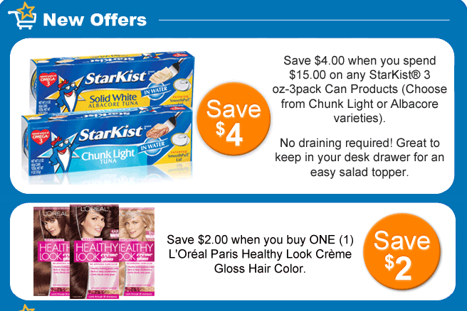 Save $4.00 when you spend $15.00 on any StarKist® 3 oz-3pack Can Products (Expires 5/26/2013)