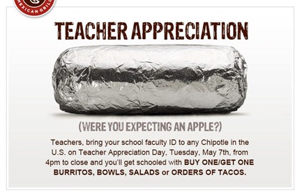 Good news for all you Chipotle lovers who happen to be (or are friends with, married to, etc.) a teacher.