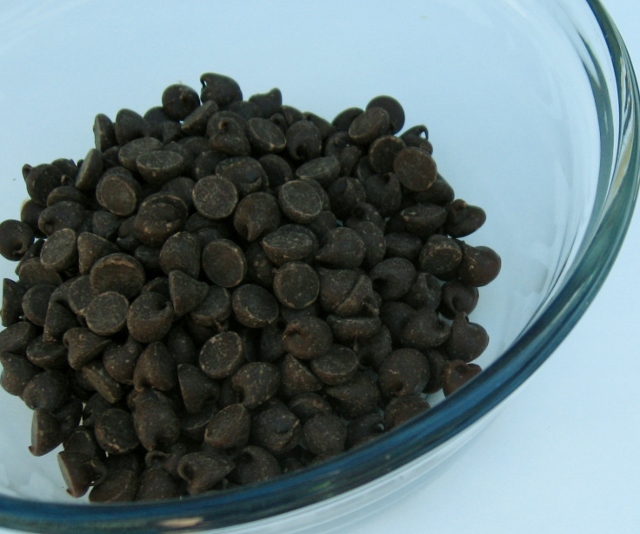 I melted the chocolate chips in a glass bowl in the microwave for 30 seconds, stirred, then microwaved for another 30 seconds.