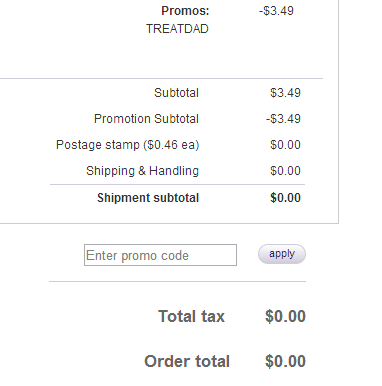 Choose “Send It To Me First” as a shipping option and receive FREE shipping as well. Or send it directly to dad and only pay $0.44 (or the cost of the stamp).