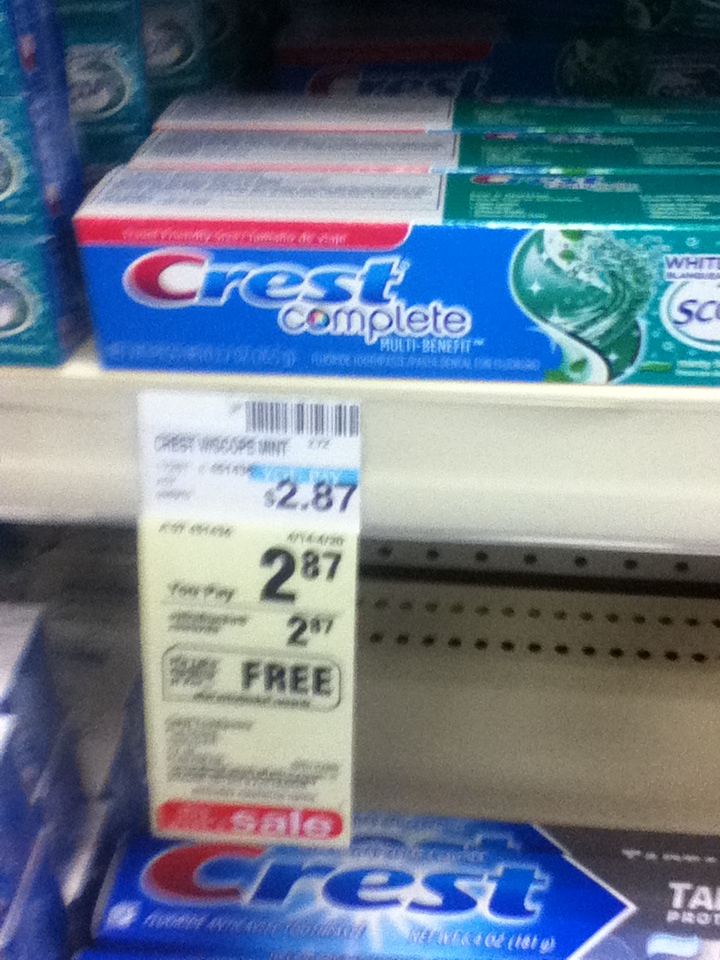 $1/1 Crest Toothpaste 4 oz.+ (excludes Cavity, Baking Soda, Tartar and trial/travel sizes) from 3/31 P&G insert (limit 4 like coupons per household per day)