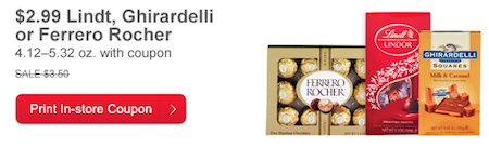 CVS is offering a coupon for $2.99 Lindt, Ghiradelli or Ferrero Rocher CVS coupon as their Deal of the Day.